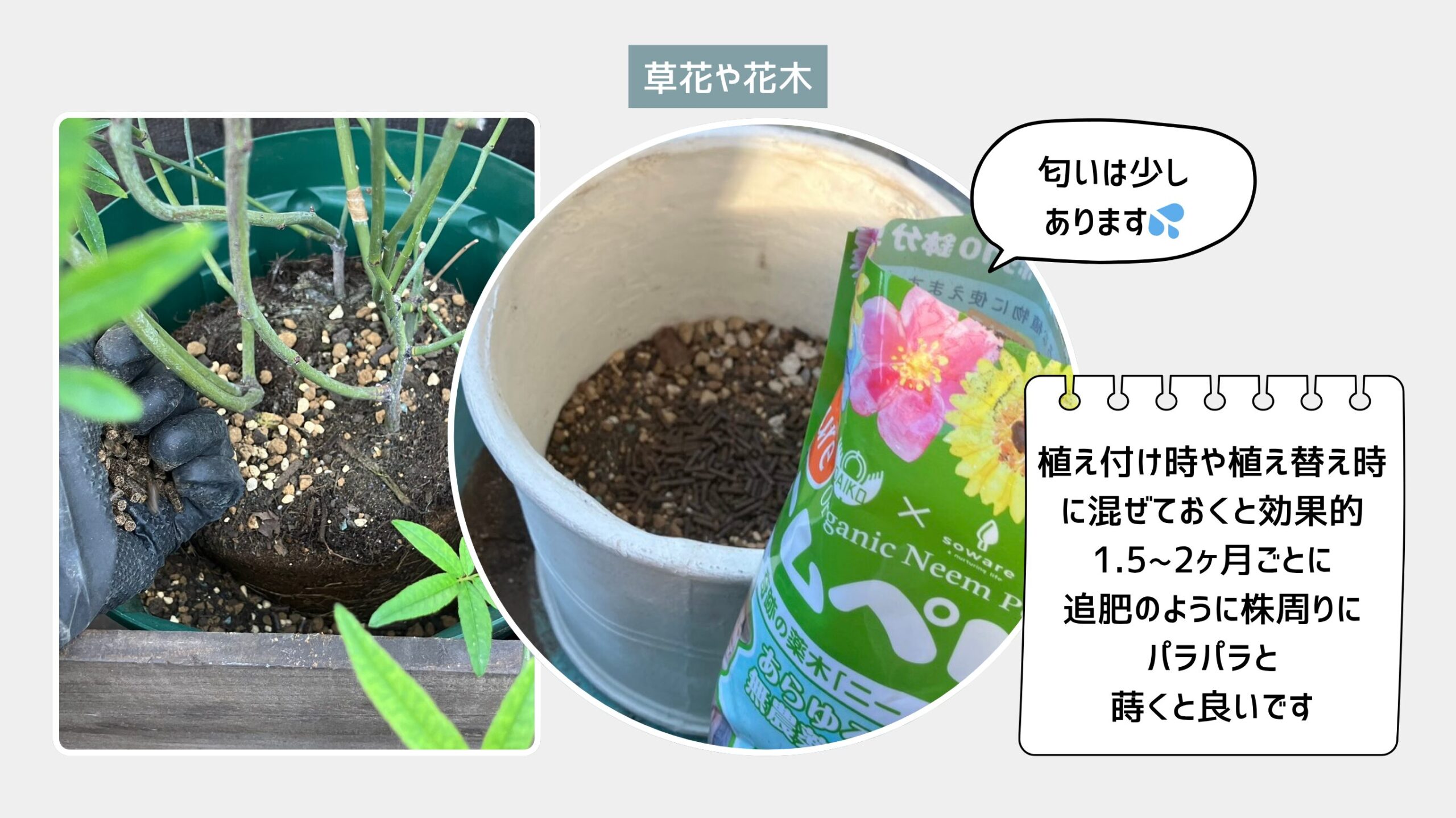 土の健康を保ちつつ、害虫被害を軽減し、長期間じっくり効く天然の有機肥料として、これからの園芸に欠かせないアイテムといえるでしょう。