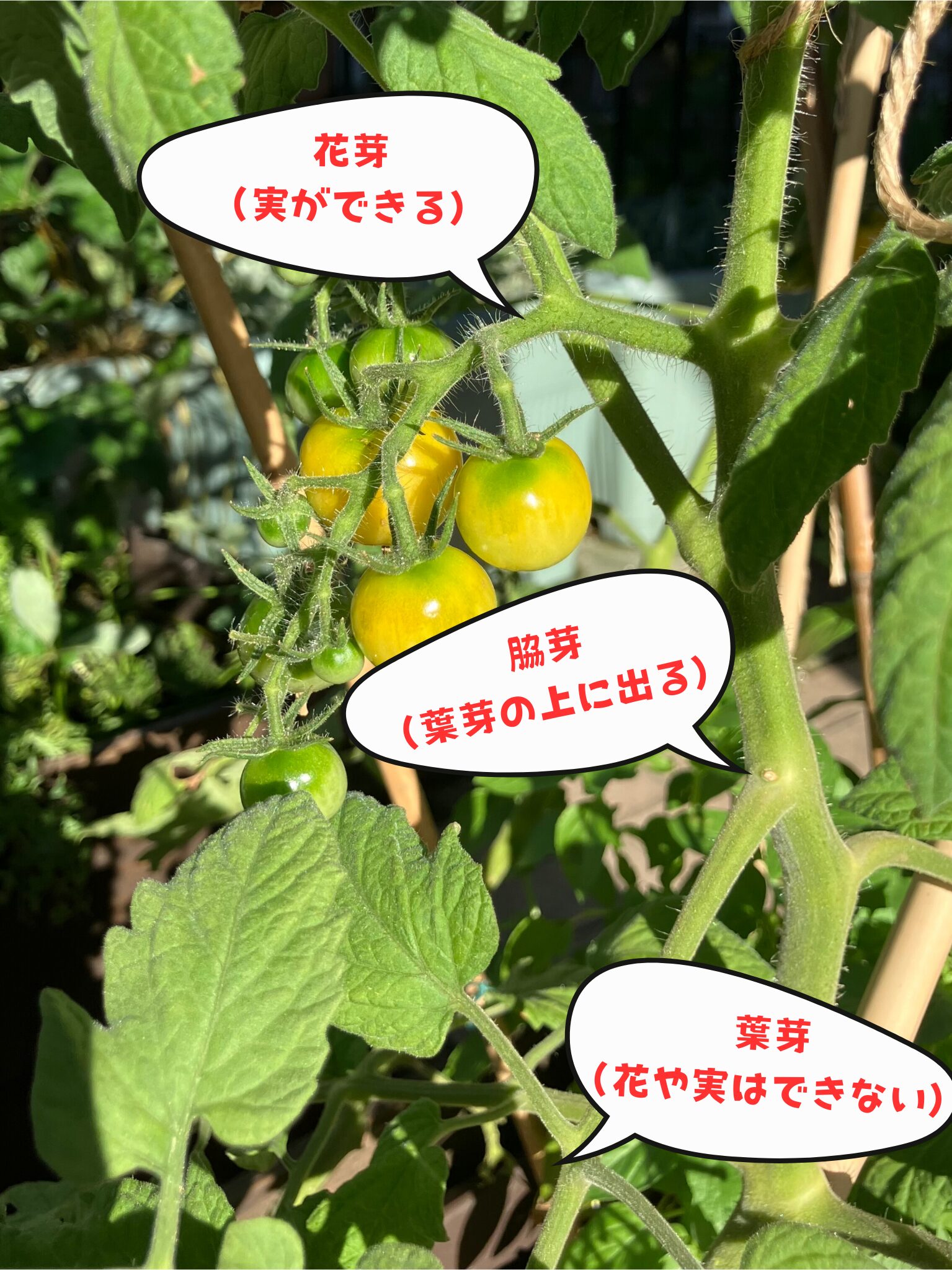 - 手入れ:脇芽欠きを忘れずに。1週間〜10日に1回の液肥も効果的です