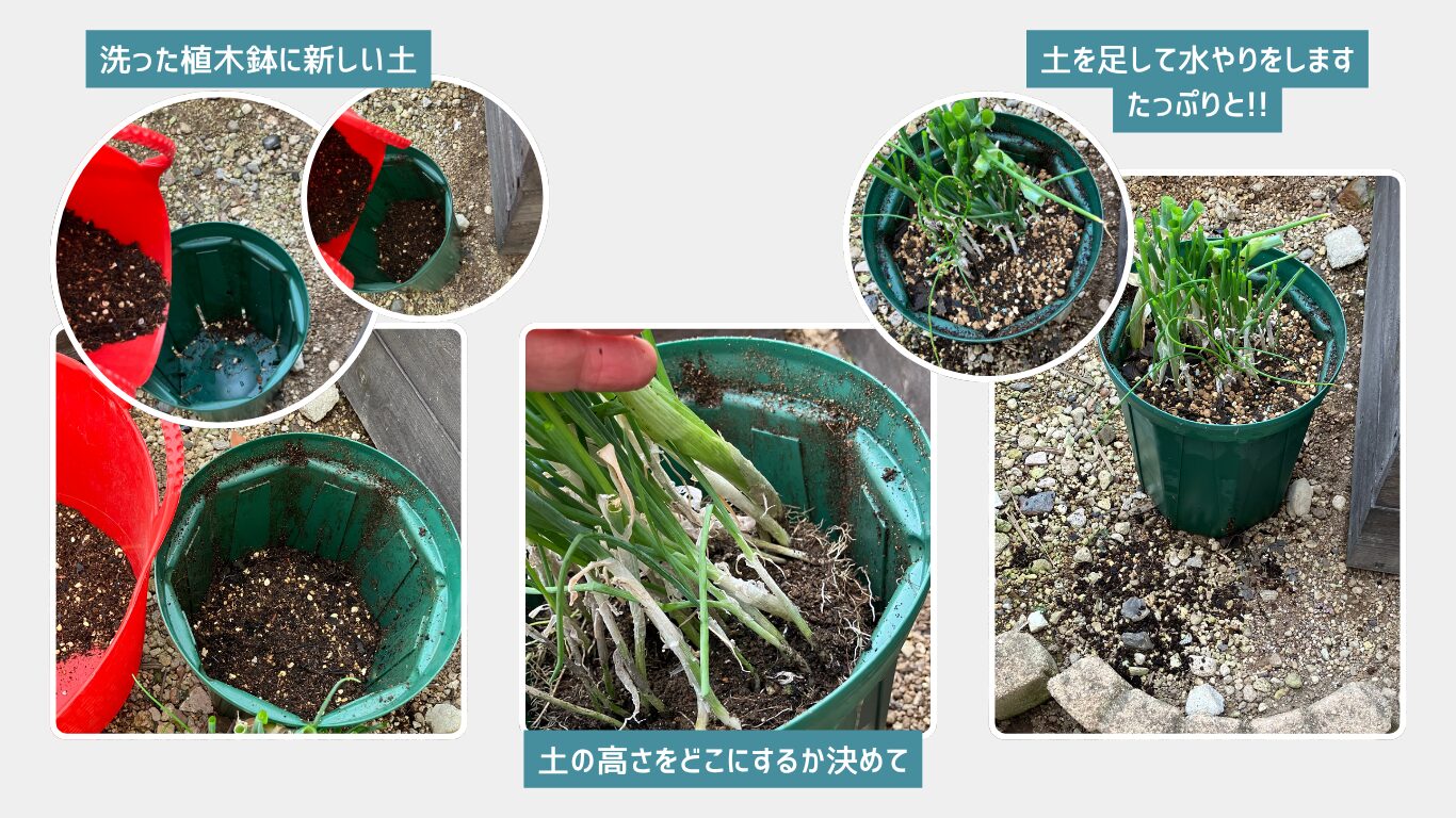 新しい土に植える手順