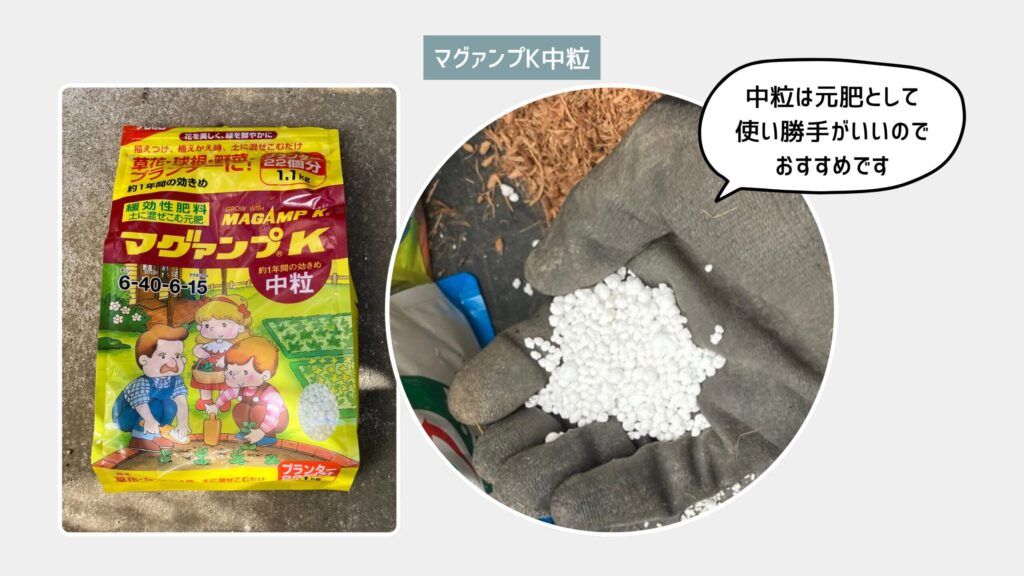 • 追肥にも使える:小粒タイプなら、植え付け後の追肥としても便利です。