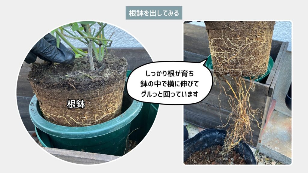 それでも外側の鉢をグイグイ押して、なんとか根鉢を取り出しました。