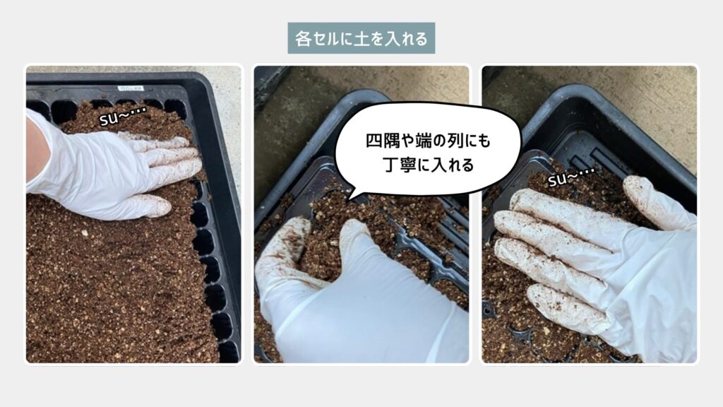 培土の湿らせ方、セルへの土の入れ方、薄い覆土、優しい水やり、適温管理――どの工程も丁寧さが大きく影響します。