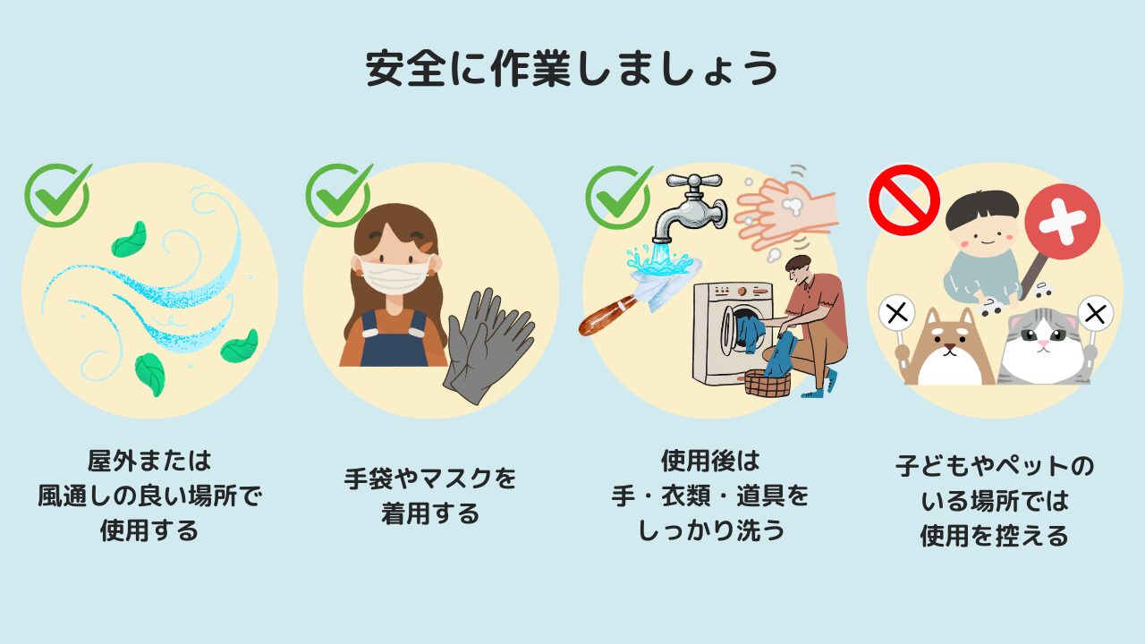 - 散布後は子どもやペットを近づけない