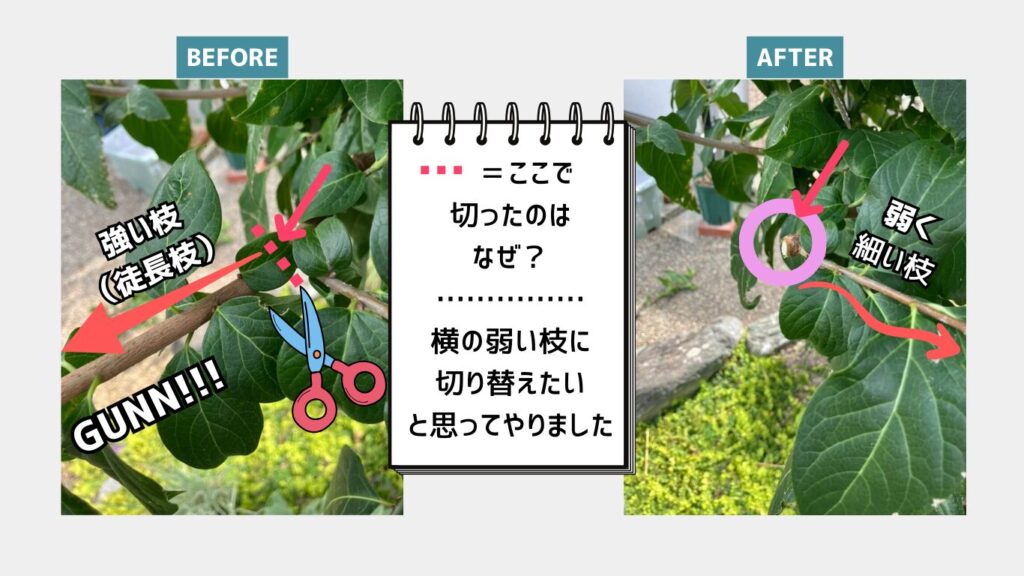 - 樹高を抑えたいときは、分岐点で軽く切り戻す