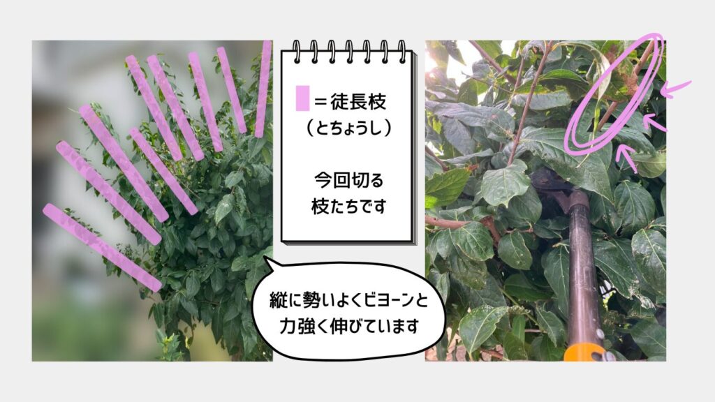 夏は「枝の整理」程度にとどめ、花芽を残す枝選びがポイントです。