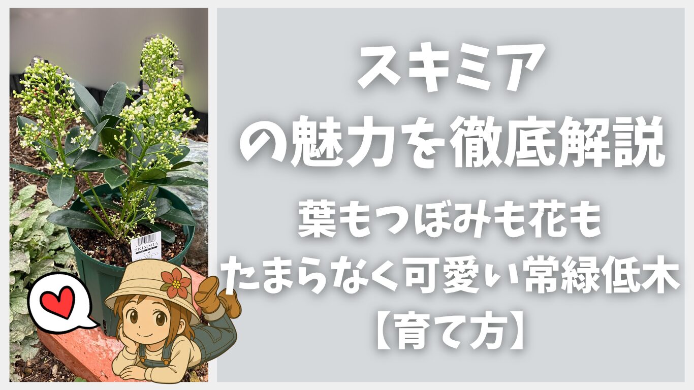 スキミア(ミヤマシキミ)は冬の庭を彩る赤いつぼみと、春に咲く小さな白い花がとても可愛らしく、年中楽しめる常緑低木です。