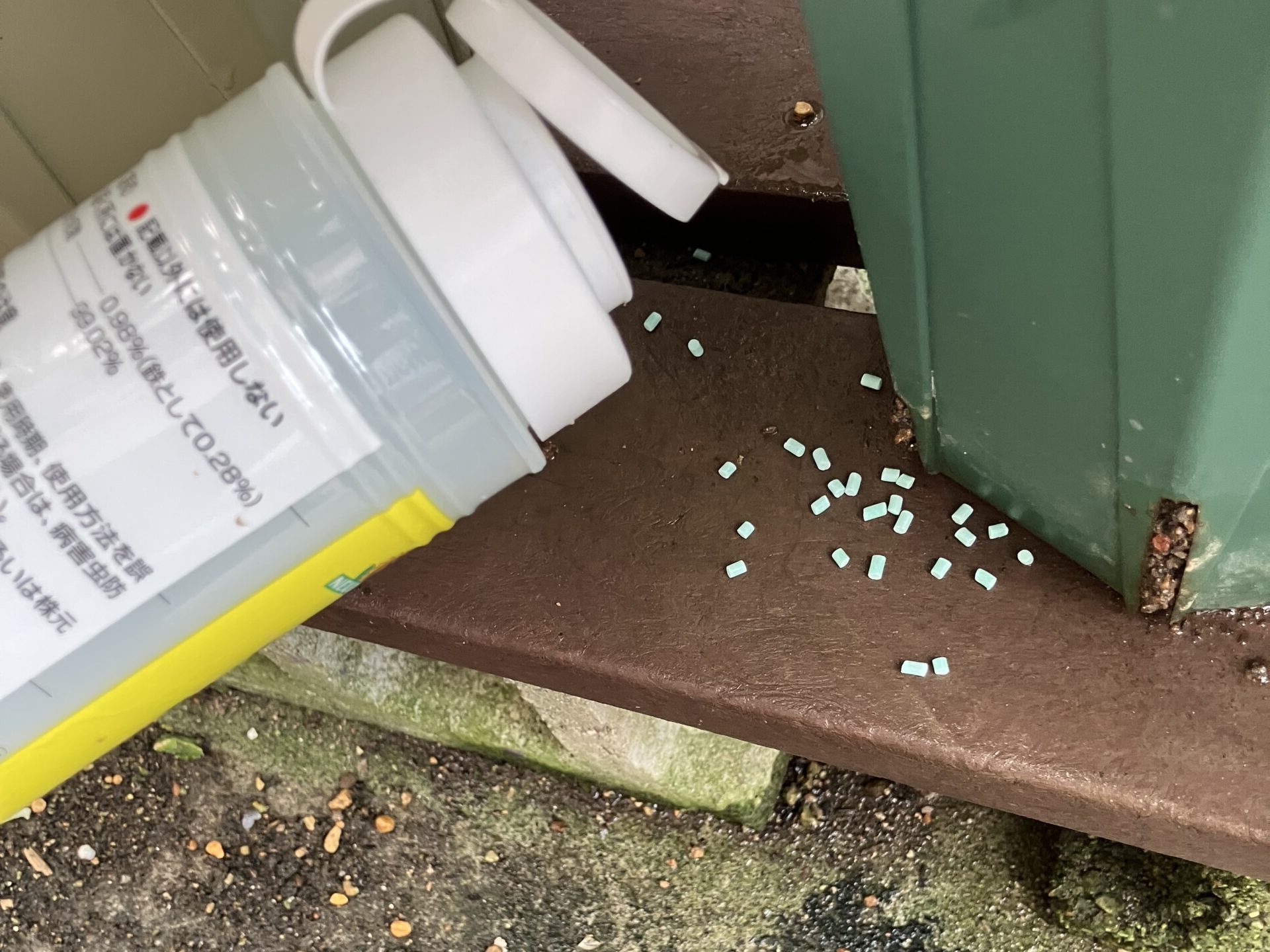1㎡あたり1〜5gを目安に、被害のある場所へ均等に散布します。