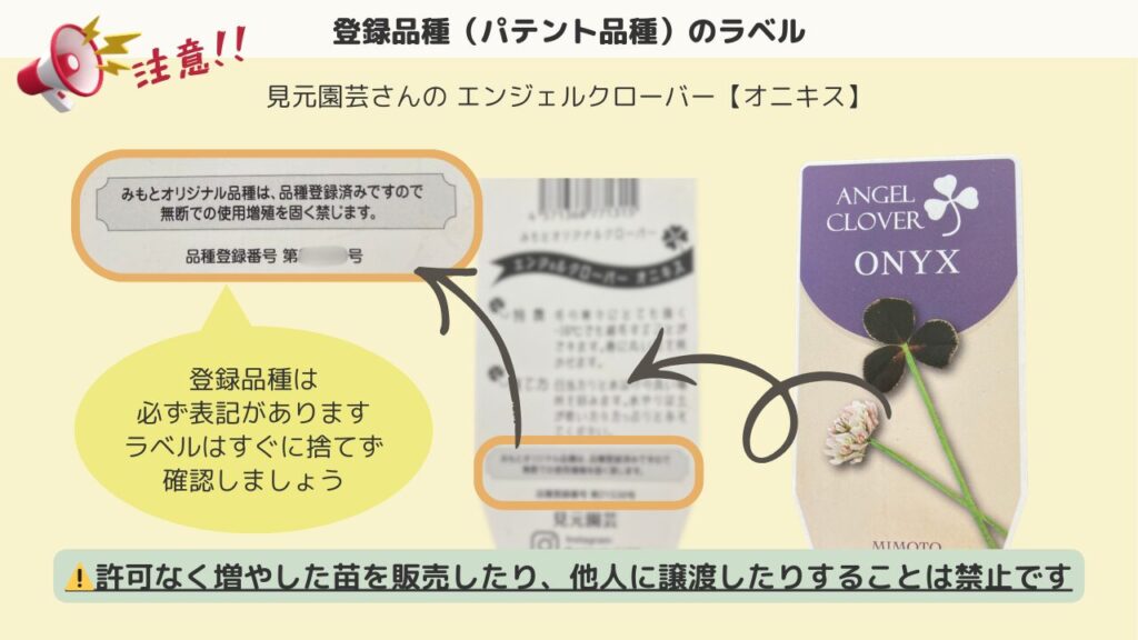 宿根草には「登録品種(PVPマーク付き)」が多くあります。これらは法律(種苗法)で守られており、許可なく増やした苗を販売したり、他人に譲渡したりすることは禁止されています。